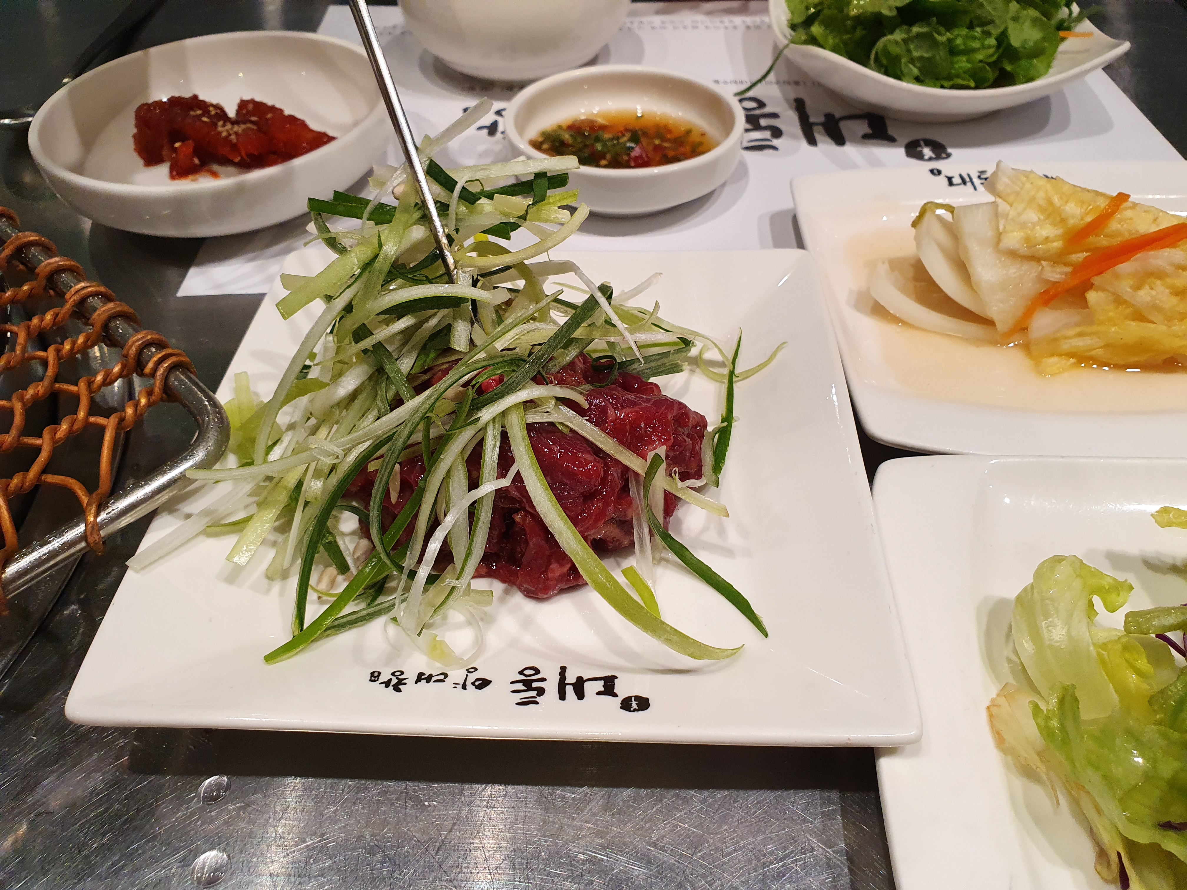 우리가 생각하는 무가 얹어진 달달한 육회와는 달리 육향이 조금더 강하고 단맛이 없었다.