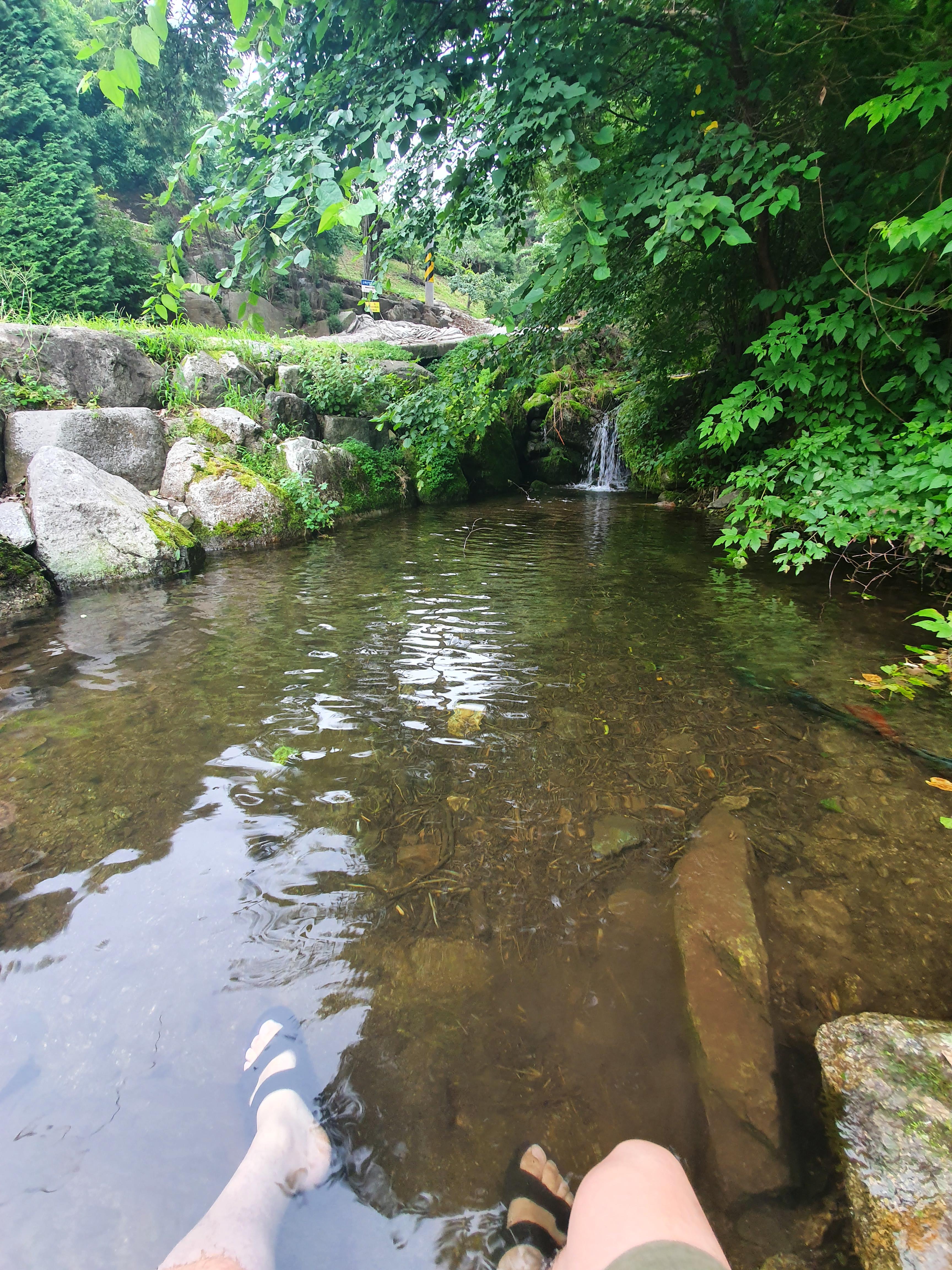 계곡에 시원하게 발을 담궈본다.