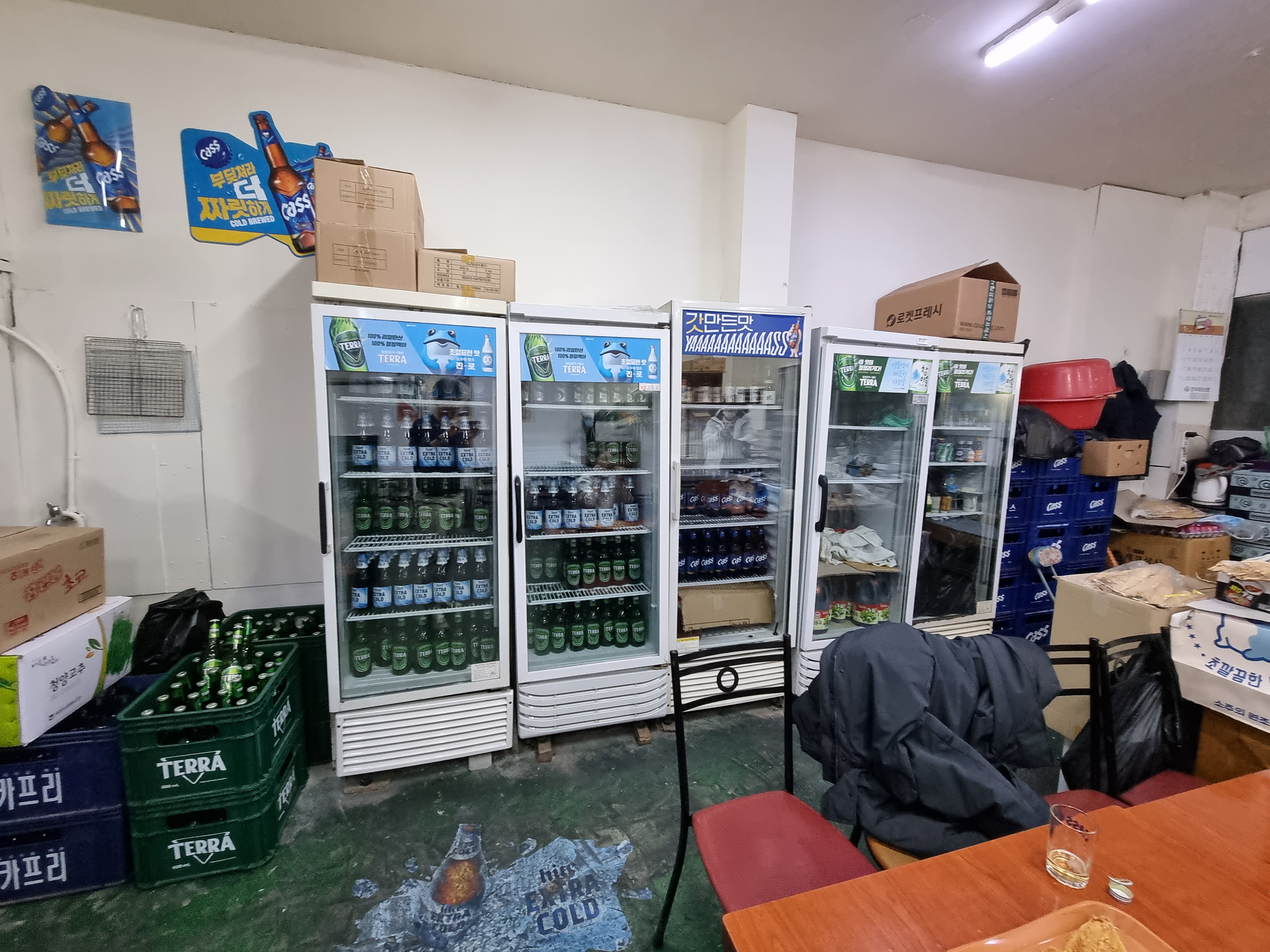 술은 말하면 가져다 주시지만 뒤의 냉장고에서 꺼내 먹어도 된다.