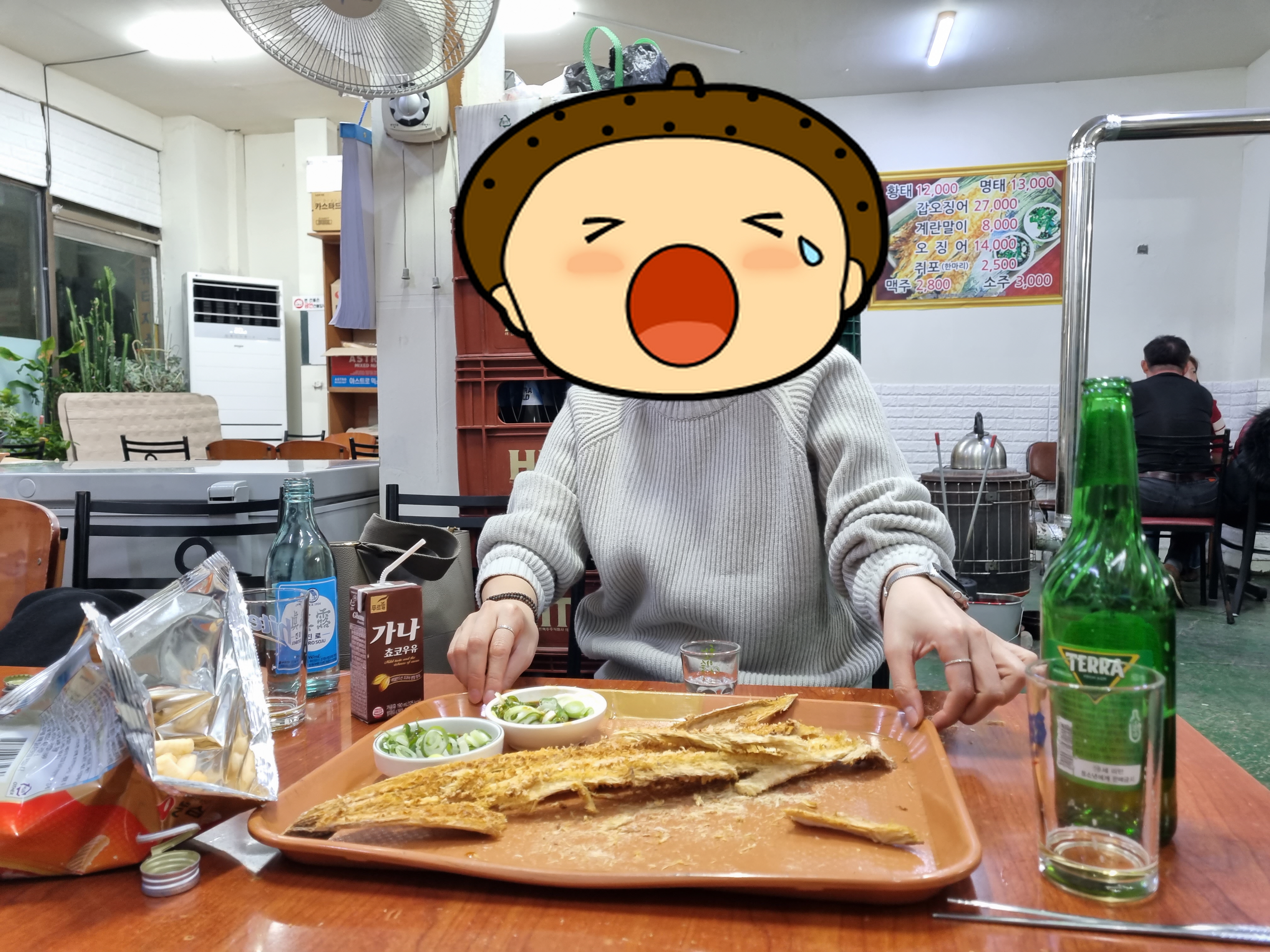 황태포는 넉넉한 사이즈이며 과자나 음료수 같은것을 가져와서 함께 먹어도 된다.